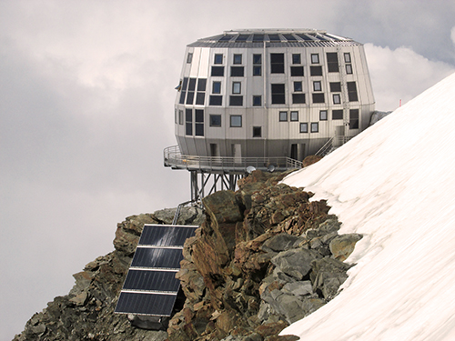 Sweating means that you need to carry plenty of water and imbibe frequently. Water is remarkably heavy. For the climb to the Goûter hut we needed, in addition to sun and woolly hats, a hard hat for the crossing of the Grand Couloir, where rocks frequently dislodge from the crumbling mountain above and come bounding down like cannonballs.